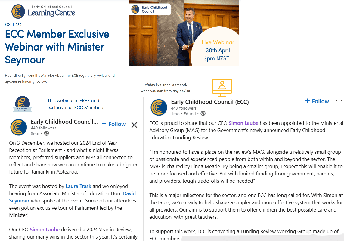 However, other major players in the sector, such as the teachers’ union NZEI to discuss ECE specifically, have barely got a look in.